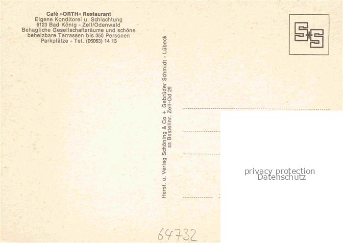 74006020 Bad Koenig Odenwald Cafe Orth Restaurant postalisch nicht gelaufen Erhaltung siehe scans [WerneD78] KatCode: 11110006437001