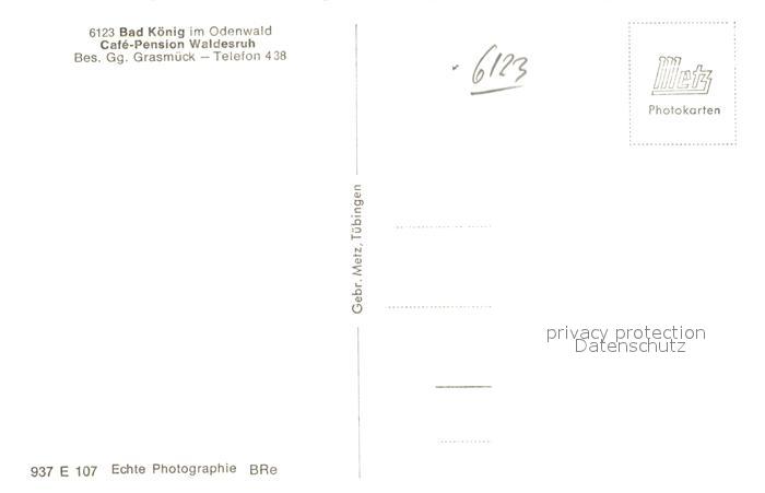 42949940 Bad Koenig Odenwald Cafe Pension Waldesruh postalisch nicht gelaufen Erhaltung siehe scans [AndreD76] KatCode: 11110006437001