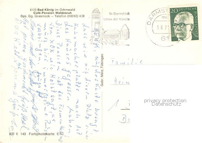 73615391 alte Postkarte Bad Koenig Odenwald Cafe Pension Waldesruh postalisch gelaufen Erhaltung siehe scans [WerneD78] KatCode: 11110006437001