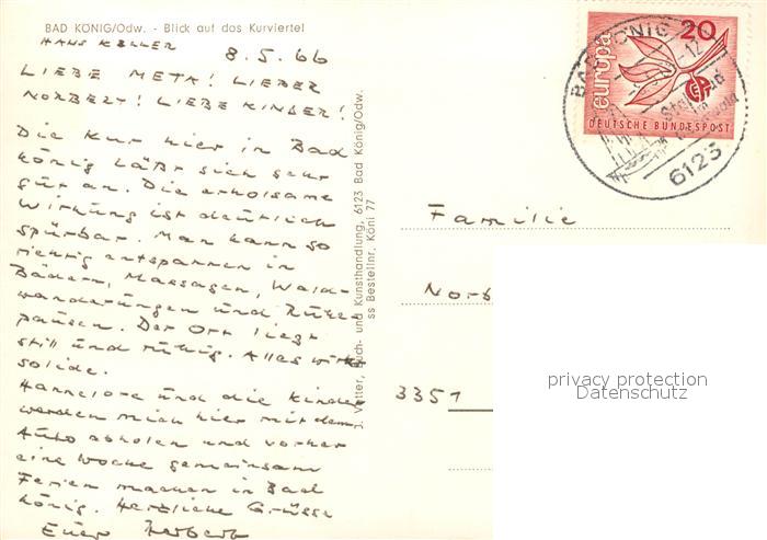 73029968 alte Postkarte Bad Koenig Odenwald Fliegeraufnahme postalisch gelaufen Erhaltung siehe scans [KathaD81] KatCode: 11110006437001