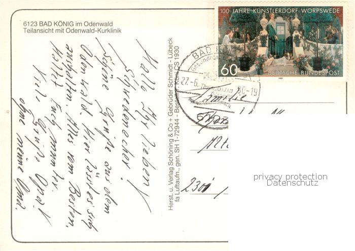 73761627 alte Postkarte Bad Koenig Odenwald Fliegeraufnahme mit Odenwald Kurklinik postalisch gelaufen Erhaltung siehe scans [WerneD78] KatCode: 11110006437001