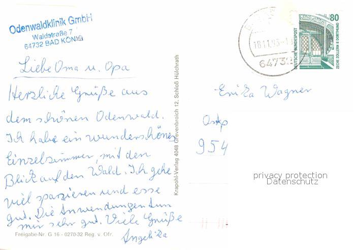 72636169 alte Postkarte Bad Koenig Odenwald Fliegeraufnahme Odenwaldklinik postalisch gelaufen Erhaltung siehe scans [WerneD78] KatCode: 11110006437001