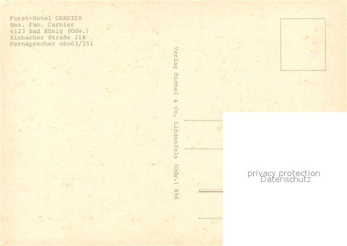 73092860 Bad Koenig Odenwald Forst-Hotel Carnier postalisch nicht gelaufen Erhaltung siehe scans [NatalD47] KatCode: 11110006437001