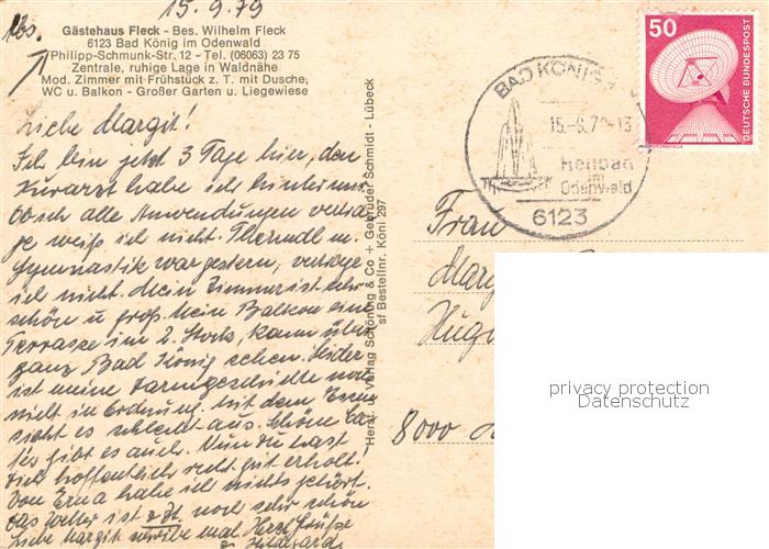 73779844 alte Postkarte Bad Koenig Odenwald Gaestehaus Fleck Wintergarten Garten postalisch gelaufen Erhaltung siehe scans [FriedD77] KatCode: 11110006437001