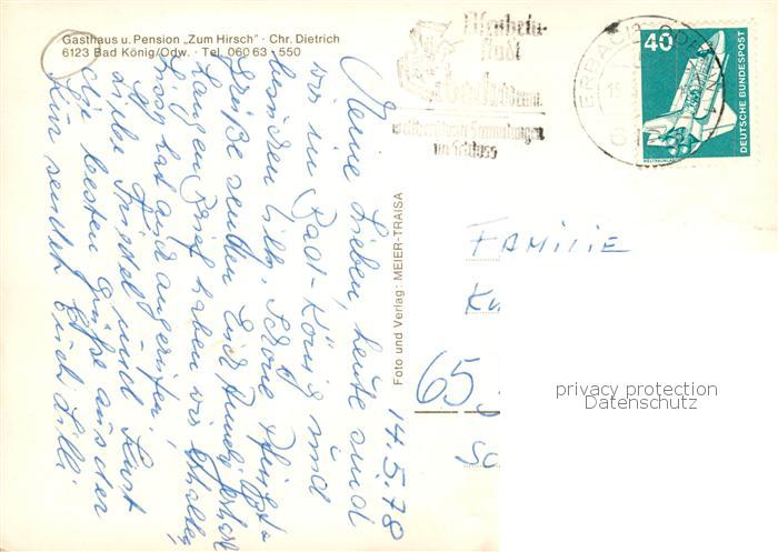 73863413 alte Postkarte Bad Koenig Odenwald Gasthaus Pension zum Hirsch Gastraum postalisch gelaufen Erhaltung siehe scans [FriedD77] KatCode: 11110006437001