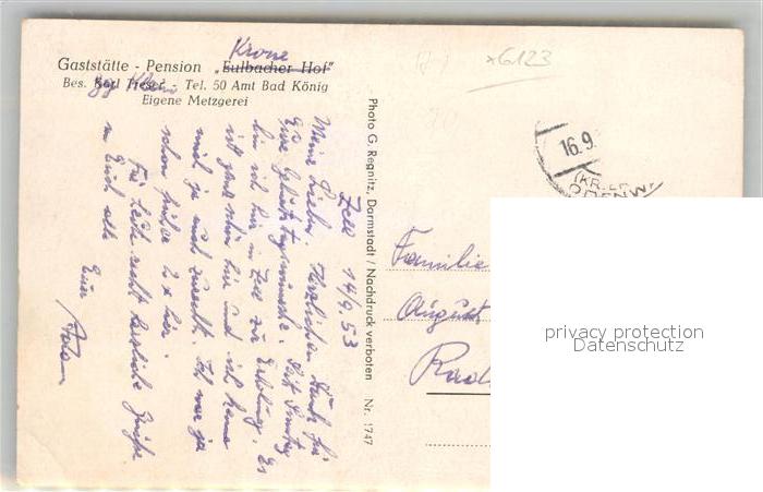 42932798 alte Postkarte Bad Koenig Odenwald Gasthof Pension Krone postalisch gelaufen Erhaltung siehe scans [AndreD76] KatCode: 11110006437001
