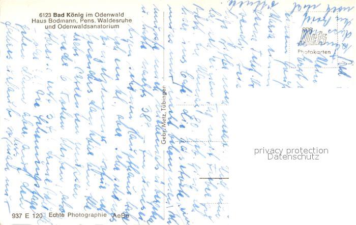 43352230 alte Postkarte Bad Koenig Odenwald Haus Bodman Pension Waldesruhe und Odenwaldsanatorium postalisch gelaufen Erhaltung siehe scans [WerneD78] KatCode: 11110006437001