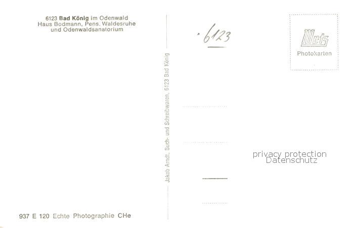 42949936 Bad Koenig Odenwald Haus Bodmann Pension Waldesruh Odenwaldsanatorium postalisch nicht gelaufen Erhaltung siehe scans [AndreD76] KatCode: 11110006437001