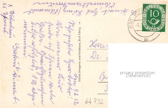 43001293 alte Postkarte Bad Koenig Odenwald Hotel Bodmann Cafe Waldesruh Haus Waldeck postalisch gelaufen Erhaltung siehe scans [FriedD77] KatCode: 11110006437001