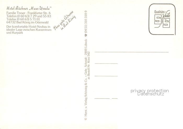 73730722 Bad Koenig Odenwald Hotel Buechner Haus Ursula Hallenbad postalisch nicht gelaufen Erhaltung siehe scans [FriedD77] KatCode: 11110006437001