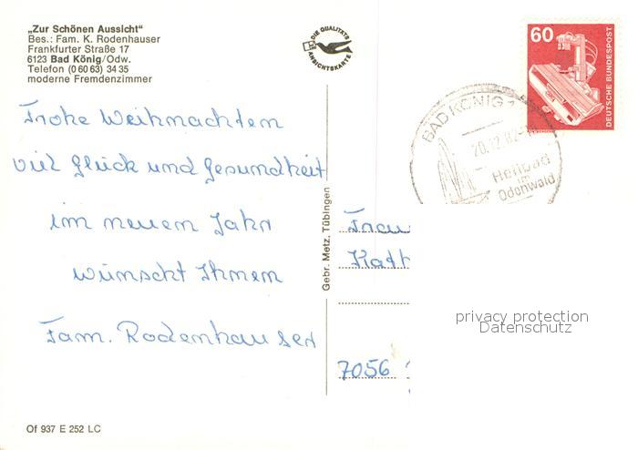 73726766 alte Postkarte Bad Koenig Odenwald Hotel Restaurant Zur schoenen Aussicht Panorama postalisch gelaufen Erhaltung siehe scans [FriedD77] KatCode: 11110006437001