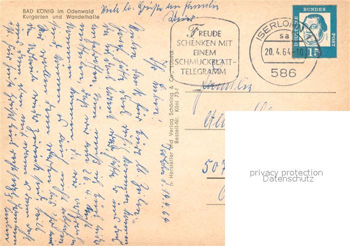 73017850 alte Postkarte Bad Koenig Odenwald Kurgarten und Wandelhalle postalisch gelaufen Erhaltung siehe scans [WerneD78] KatCode: 11110006437001