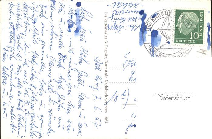 72444906 alte Postkarte Bad Koenig Odenwald Kurhotel Kurgarten Wandelhalle Weyrechtstempel Kirche postalisch gelaufen Erhaltung siehe scans KatCode: 11110006437001