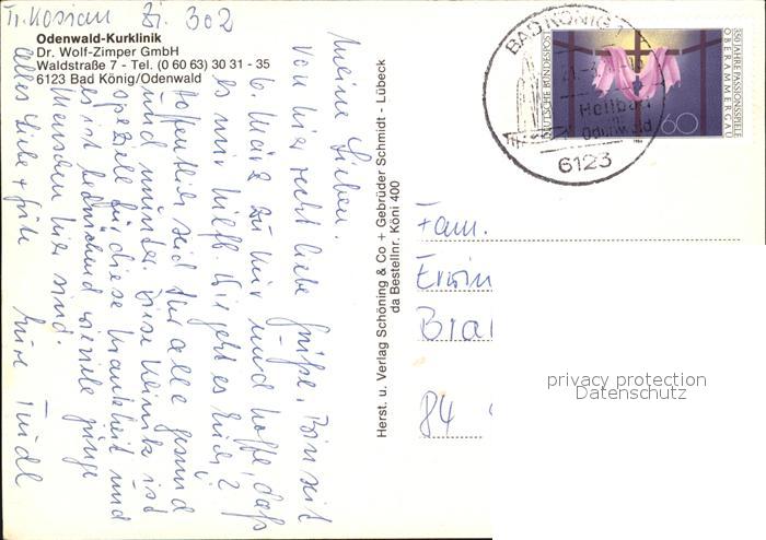 72610781 alte Postkarte Bad Koenig Odenwald Kurklinik postalisch gelaufen Erhaltung siehe scans [AndreD76] KatCode: 11110006437001