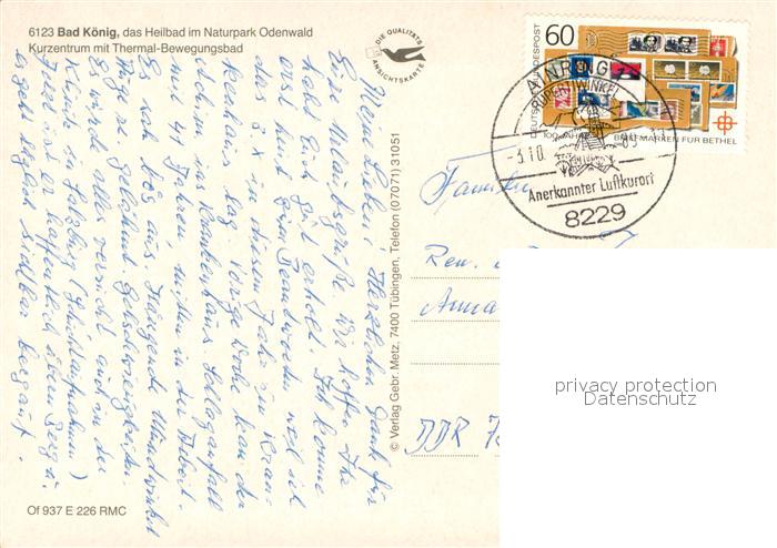 73719998 alte Postkarte Bad Koenig Odenwald Kurzentrum Thermal-Bewegungsbad Wasserspiele postalisch gelaufen Erhaltung siehe scans [FriedD77] KatCode: 11110006437001