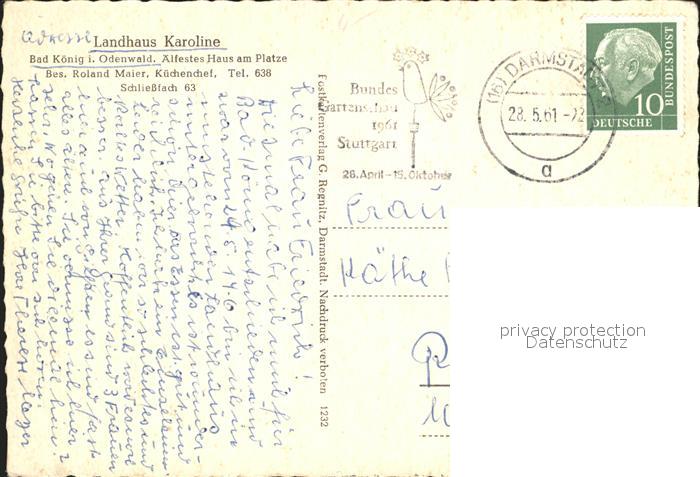 72104715 alte Postkarte Bad Koenig Odenwald Landhaus Karoline postalisch gelaufen Erhaltung siehe scans KatCode: 11110006437001