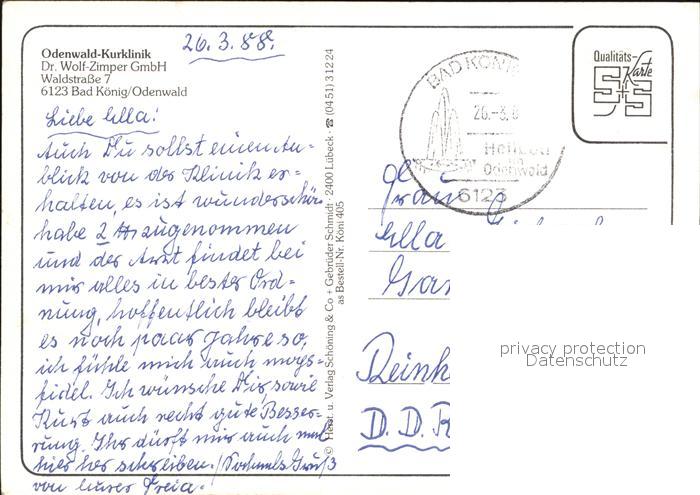 72420310 alte Postkarte Bad Koenig Odenwald Odenwald Kurklinik Dr. Wolf Zimper GmbH postalisch gelaufen Erhaltung siehe scans KatCode: 11110006437001