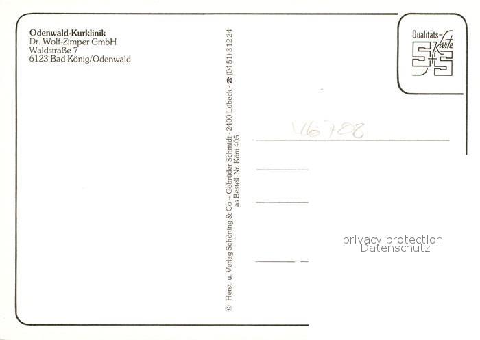 72934113 Bad Koenig Odenwald Odenwald Kurklinik Dr. Wolf Zimper GmbH postalisch nicht gelaufen Erhaltung siehe scans [LiesaD40] KatCode: 11110006437001