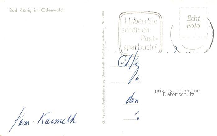 73141844 alte Postkarte Bad Koenig Odenwald Ortsansicht mit Kirche postalisch gelaufen Erhaltung siehe scans [FriedD77] KatCode: 11110006437001