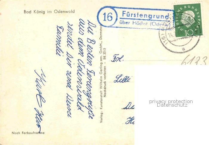 72839329 alte Postkarte Bad Koenig Odenwald Ortsansicht mit Kirche Ansicht vom Waldrand aus postalisch gelaufen Erhaltung siehe scans [FriedD77] KatCode: 11110006437001