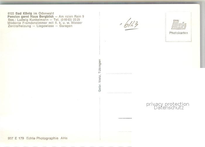 42943528 Bad Koenig Odenwald Pension Garni Haus Bergblick postalisch nicht gelaufen Erhaltung siehe scans [AndreD76] KatCode: 11110006437001