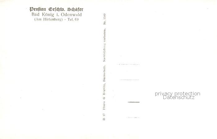 73791041 Bad Koenig Odenwald Pension Geschw. Schaefer Aussenansicht postalisch nicht gelaufen Erhaltung siehe scans [LiesaD40] KatCode: 11110006437001