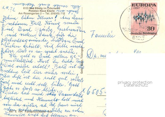 73785382 alte Postkarte Bad Koenig Odenwald Pension Haus Eisele postalisch gelaufen Erhaltung siehe scans [FriedD77] KatCode: 11110006437001