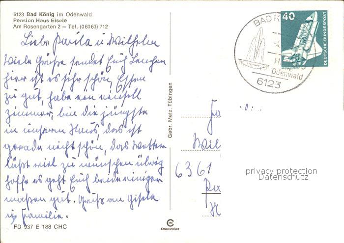 72506195 alte Postkarte Bad Koenig Odenwald Pension Haus Eisele postalisch gelaufen Erhaltung siehe scans KatCode: 11110006437001