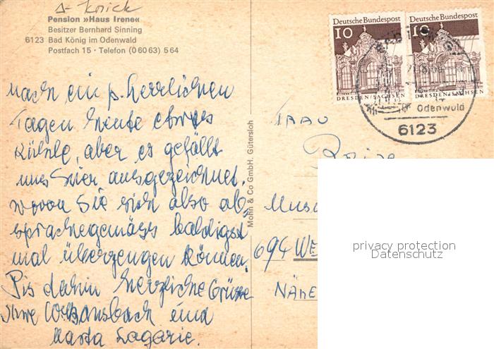 72959811 alte Postkarte Bad Koenig Odenwald Pension Haus Irene Gaststube postalisch gelaufen Erhaltung siehe scans [WerneD78] KatCode: 11110006437001