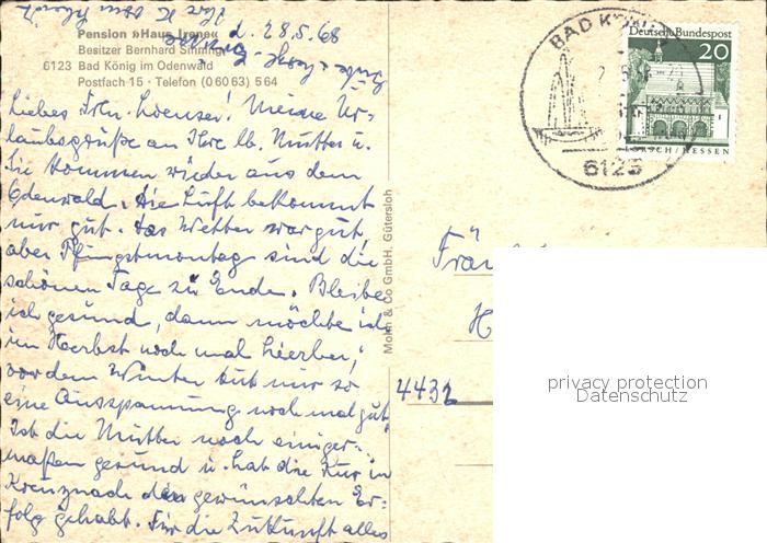 72109658 alte Postkarte Bad Koenig Odenwald Pension Irene postalisch gelaufen KatCode: 11110006437001