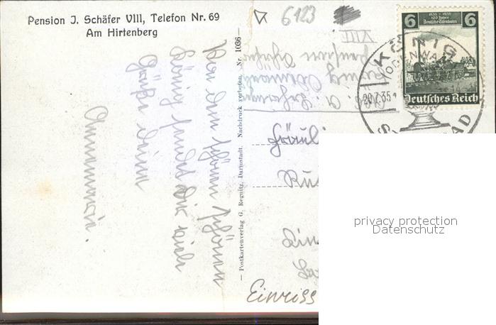 72104805 alte Postkarte Bad Koenig Odenwald Pension Schaefer postalisch gelaufen Erhaltung siehe scans KatCode: 11110006437001