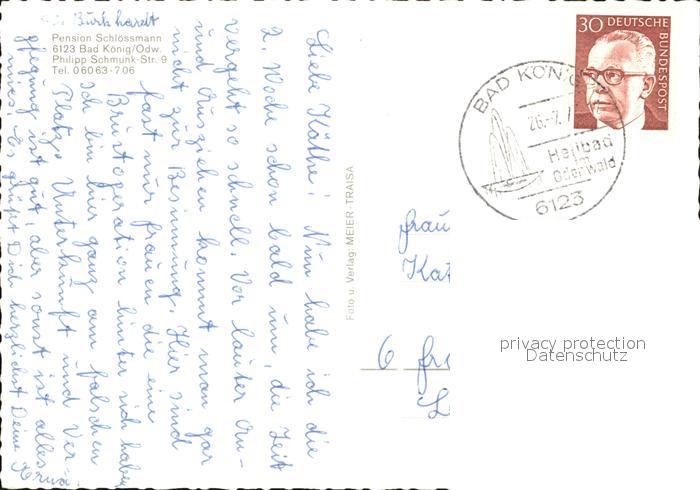 alte Postkarte Bad Koenig Odenwald Pension Schloessmann postalisch gelaufen Erhaltung siehe scans