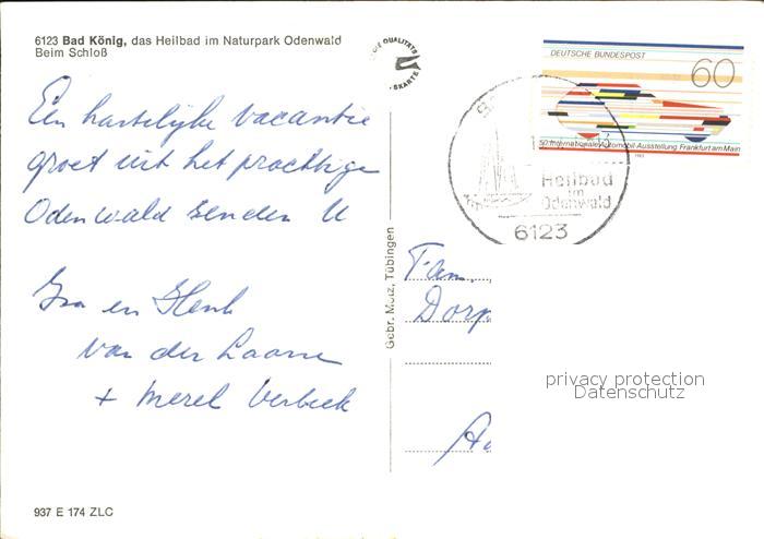 72463208 alte Postkarte Bad Koenig Odenwald Schloss Fontaene postalisch gelaufen Erhaltung siehe scans KatCode: 11110006437001