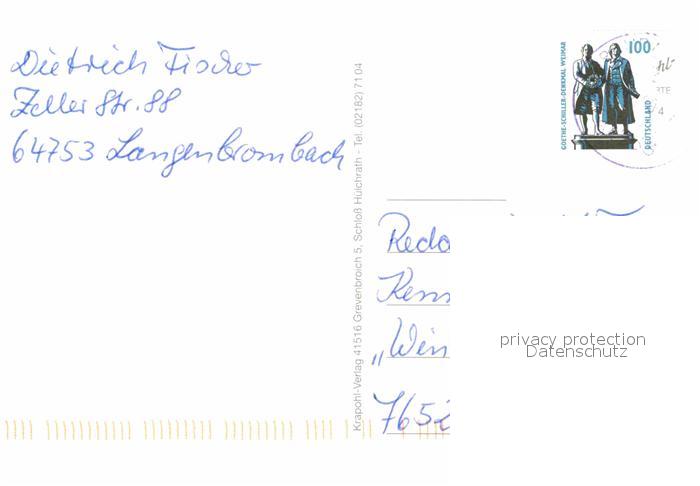 72747112 alte Postkarte Bad Koenig Odenwald Stadtbrunnen Schloss Kurzentrum Thermal Bewegungsbad Geschichte postalisch gelaufen Erhaltung siehe scans [FriedD77] KatCode: 11110006437001