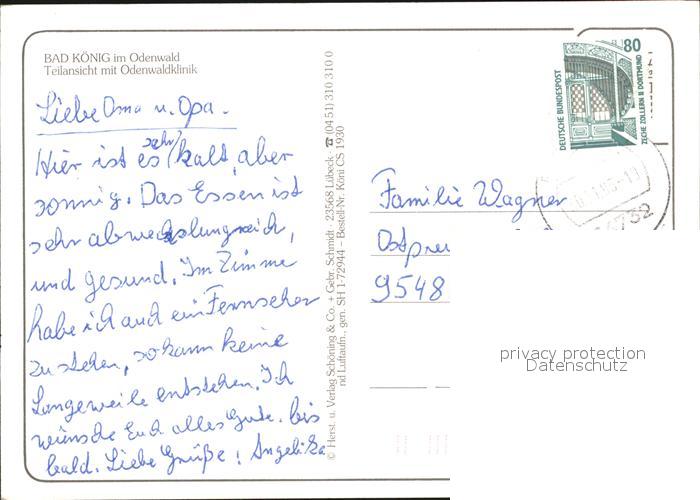 72603504 alte Postkarte Bad Koenig Odenwald Teilansicht mit Odenwaldklinik Fliegeraufnahme postalisch gelaufen Erhaltung siehe scans [FriedD77] KatCode: 11110006437001