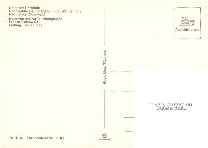 73869534 Bad Koenig Odenwald Unter der Dorflinde Hans von der Au Trachtengruppe postalisch nicht gelaufen Erhaltung siehe scans [WerneD78] KatCode: 11110006437001