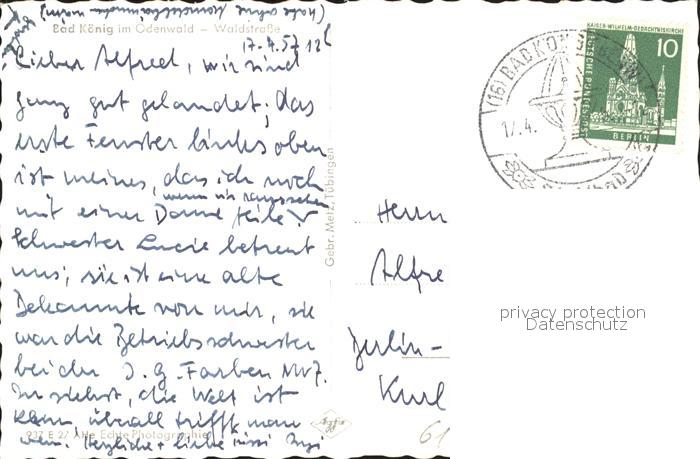 31728313 alte Postkarte Bad Koenig Odenwald Waldstrasse Haus Rose postalisch gelaufen Erhaltung siehe scans KatCode: 11110006437001