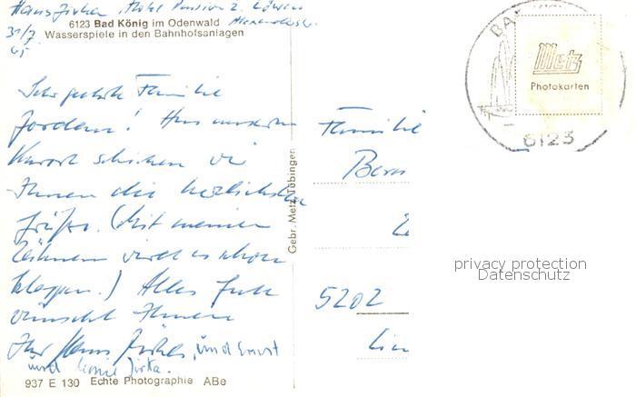73821596 alte Postkarte Bad Koenig Odenwald Wasserspiele in den Bahnhofsanlagen postalisch gelaufen Erhaltung siehe scans [WerneD78] KatCode: 11110006437001