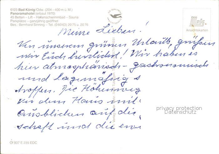 71946436 Bad Koenig Panoramahotel postalisch nicht gelaufen Erhaltung siehe scans KatCode: 11110006437001