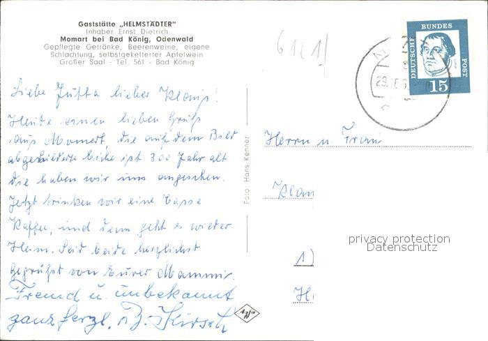 31731215 alte Postkarte Bad Koenig Restaurant Helmstaedter Ernst Dietrich postalisch gelaufen Erhaltung siehe scans KatCode: 11110006437001