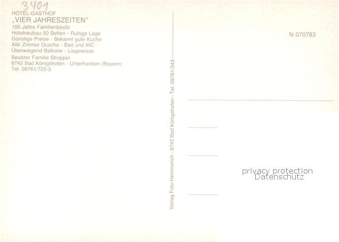 73541264 Bad Koenigshofen Gasthof Hotel Vier Jahres Zeiten postalisch nicht gelaufen Erhaltung siehe scans [KathaD81] KatCode: 11110009673141