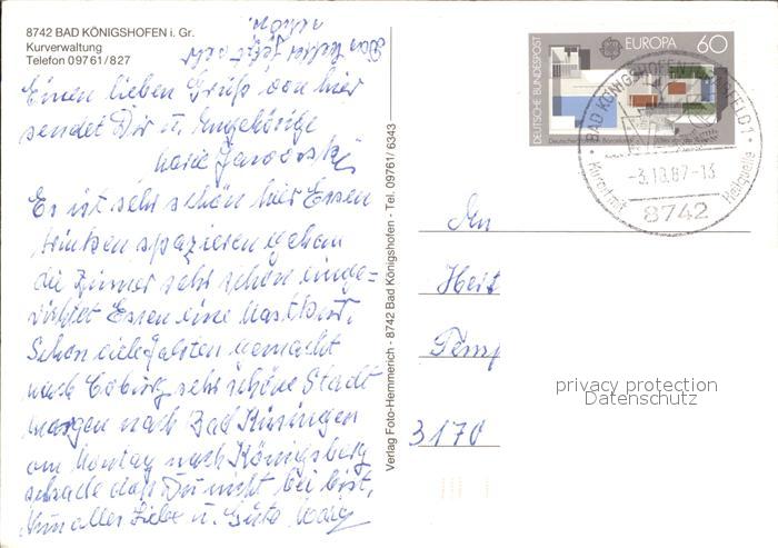 72130261 alte Postkarte Bad Koenigshofen Kirche Brunnen postalisch gelaufen Erhaltung siehe scans KatCode: 11110009673141