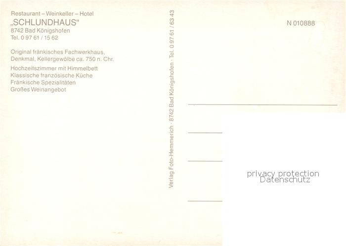 73332125 Bad Koenigshofen Restaurant Weinkeller Hotel Schlundhaus postalisch nicht gelaufen Erhaltung siehe scans [LiesaD40] KatCode: 11110009673141