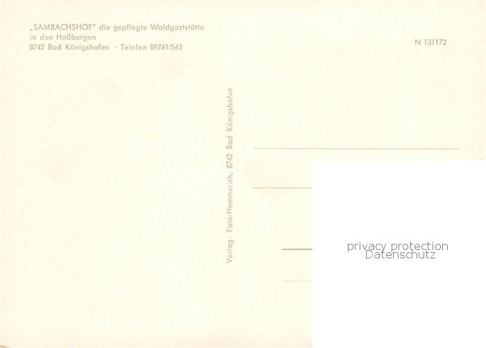 73845664 Bad Koenigshofen Waldgaststaette Sambachshof Gaststube Teich Terrasse postalisch nicht gelaufen Erhaltung siehe scans [FriedD77] KatCode: 11110009673141