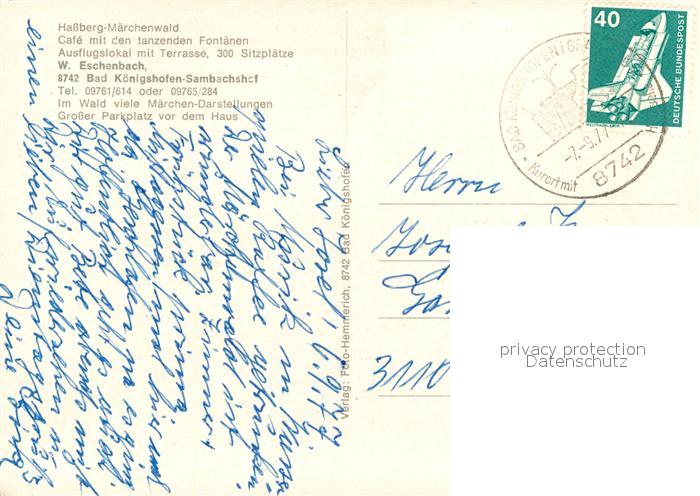 73185236 alte Postkarte Bad Koenigshofen Wasserspiele Cafe Maerchenwald postalisch gelaufen Erhaltung siehe scans [LiesaD40] KatCode: 11110009673141