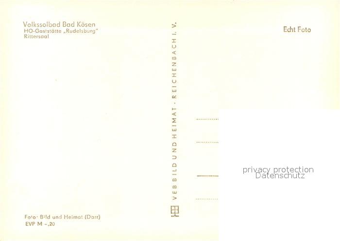 73724360 Bad Koesen HO-Gaststaette Rudelsburg Rittersaal postalisch nicht gelaufen Erhaltung siehe scans [LiesaD40] KatCode: 11110015084020