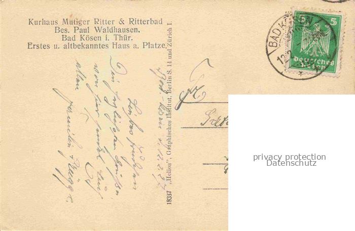 74057276 alte Postkarte Bad Koesen Kurhaus Mutiger Ritter und Ritterbad postalisch gelaufen Erhaltung siehe scans [WerneD78] KatCode: 11110015084020