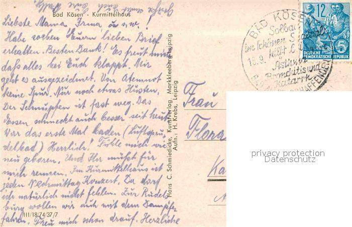72924982 alte Postkarte Bad Koesen Kurmittelhaus postalisch gelaufen Erhaltung siehe scans [WerneD78] KatCode: 11110015084020