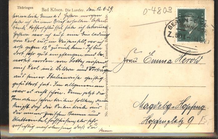 41420748 alte Postkarte Bad Koesen Restaurant Loreley an der Saale postalisch gelaufen Erhaltung siehe scans KatCode: 11110015084020