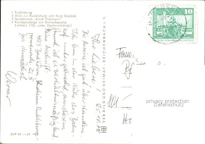 72447967 alte Postkarte Bad Koesen Rudelsburg Sanatorium Ernst Thaelmann postalisch gelaufen Erhaltung siehe scans KatCode: 11110015084020